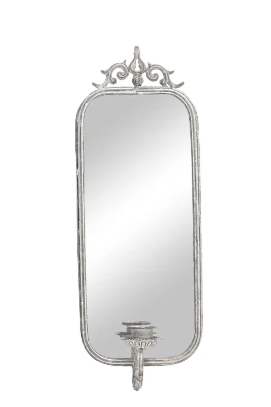 Дзеркало настінне з підсвічником, 20x10xH57см, метал, колір сірий