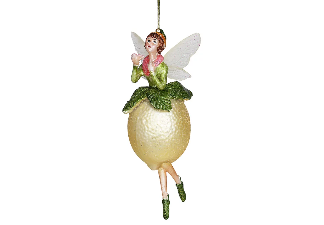 Ялинкова фігурна прикраса зі скла Лісова фея-лимон 15см