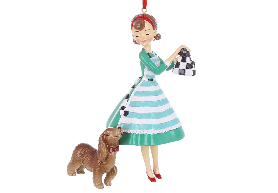 Декоративна підвісна фігурка Дівчина зі спанієлем 9.5*6.5*14.5см, полістоун