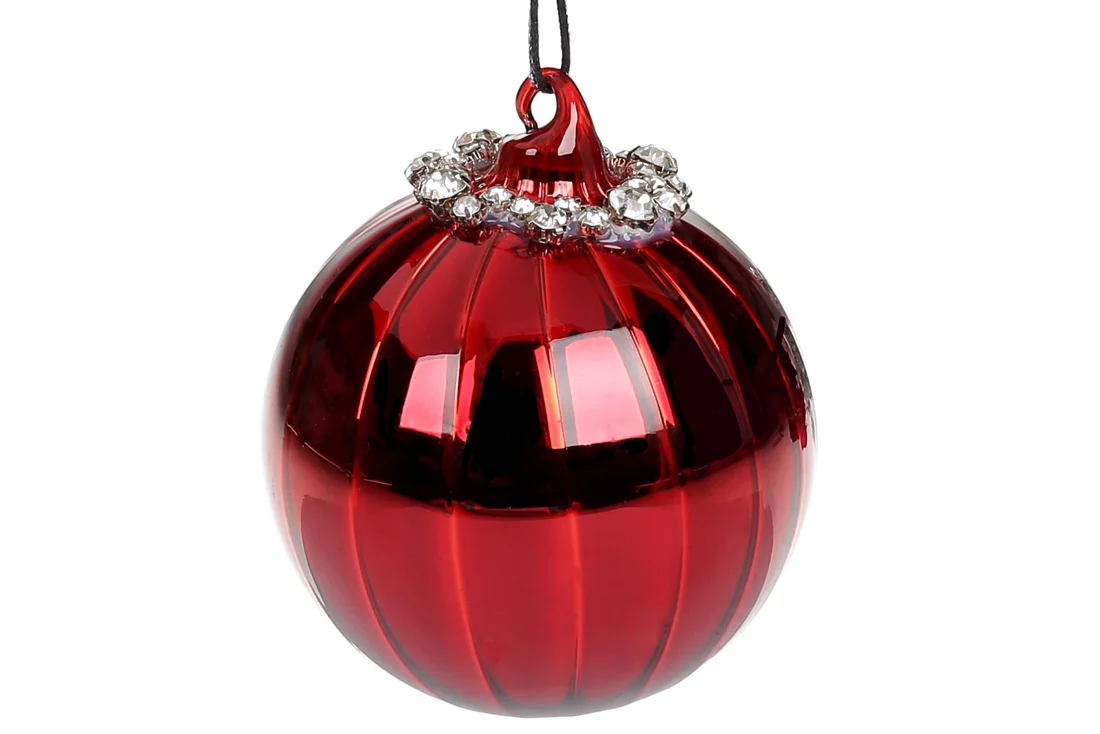 Ялинкова куля з декором з каміння, 8см, колір - глибокий червоний
