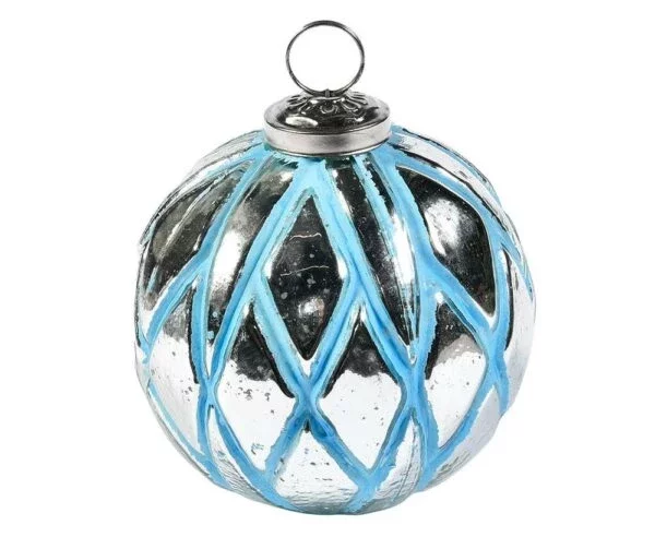 Прикраса «Куля», 8*8 см, колір блакитний зі сріблом